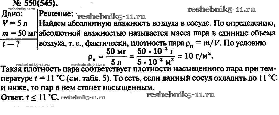 Готовая домашняя работа с ответами по Физике за 10, 11 класс Рымкевич Задачник УМК Дрофа 2013 ФГОС - Задачи 550