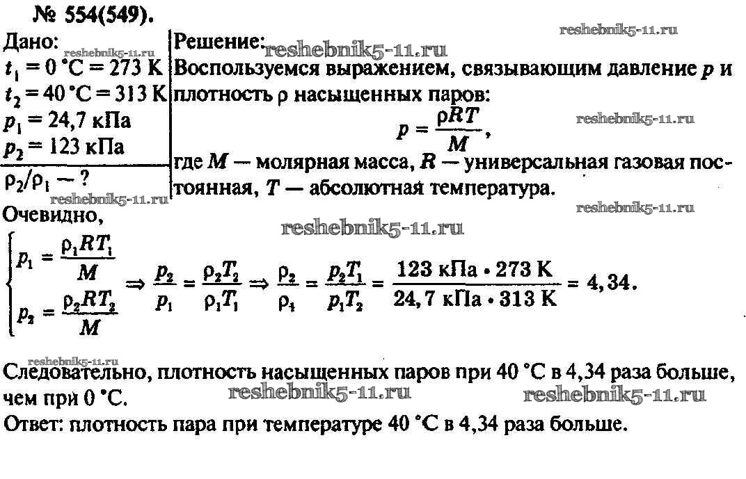 Готовая домашняя работа с ответами по Физике за 10, 11 класс Рымкевич Задачник УМК Дрофа 2013 ФГОС - Задачи 554
