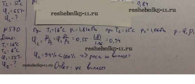Готовая домашняя работа с ответами по Физике за 10, 11 класс Рымкевич Задачник УМК Дрофа 2013 ФГОС - Задачи 570