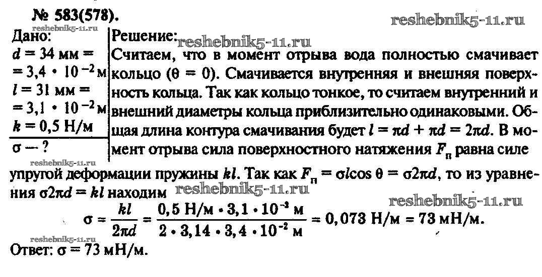 Готовая домашняя работа с ответами по Физике за 10, 11 класс Рымкевич Задачник УМК Дрофа 2013 ФГОС - Задачи 583