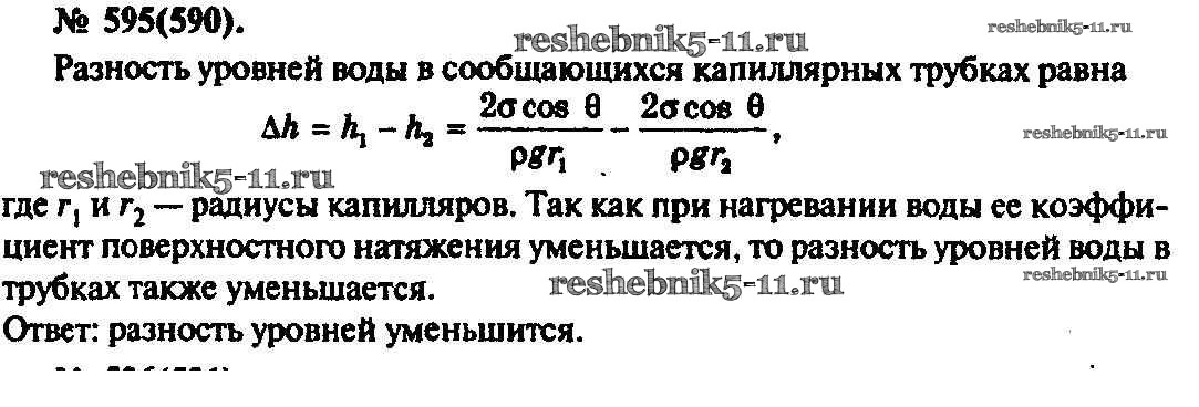 Готовая домашняя работа с ответами по Физике за 10, 11 класс Рымкевич Задачник УМК Дрофа 2013 ФГОС - Задачи 595