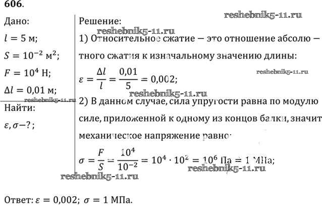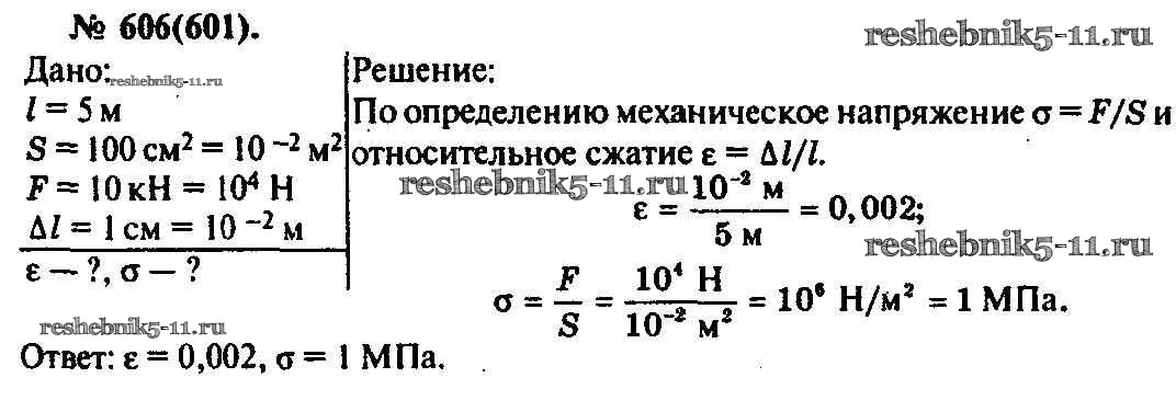 Готовая домашняя работа с ответами по Физике за 10, 11 класс Рымкевич Задачник УМК Дрофа 2013 ФГОС - Задачи 606
