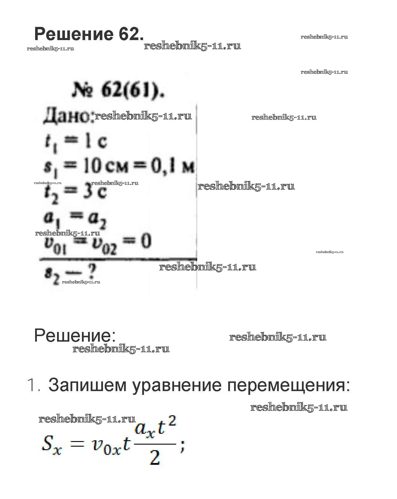 Готовая домашняя работа с ответами по Физике за 10, 11 класс Рымкевич Задачник УМК Дрофа 2013 ФГОС - Задачи 62