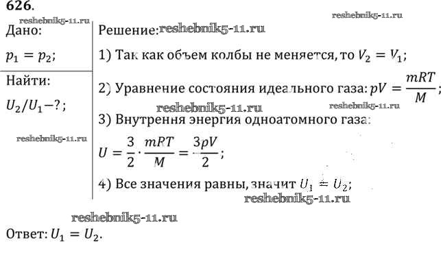Готовая домашняя работа с ответами по Физике за 10, 11 класс Рымкевич Задачник УМК Дрофа 2013 ФГОС - Задачи 626