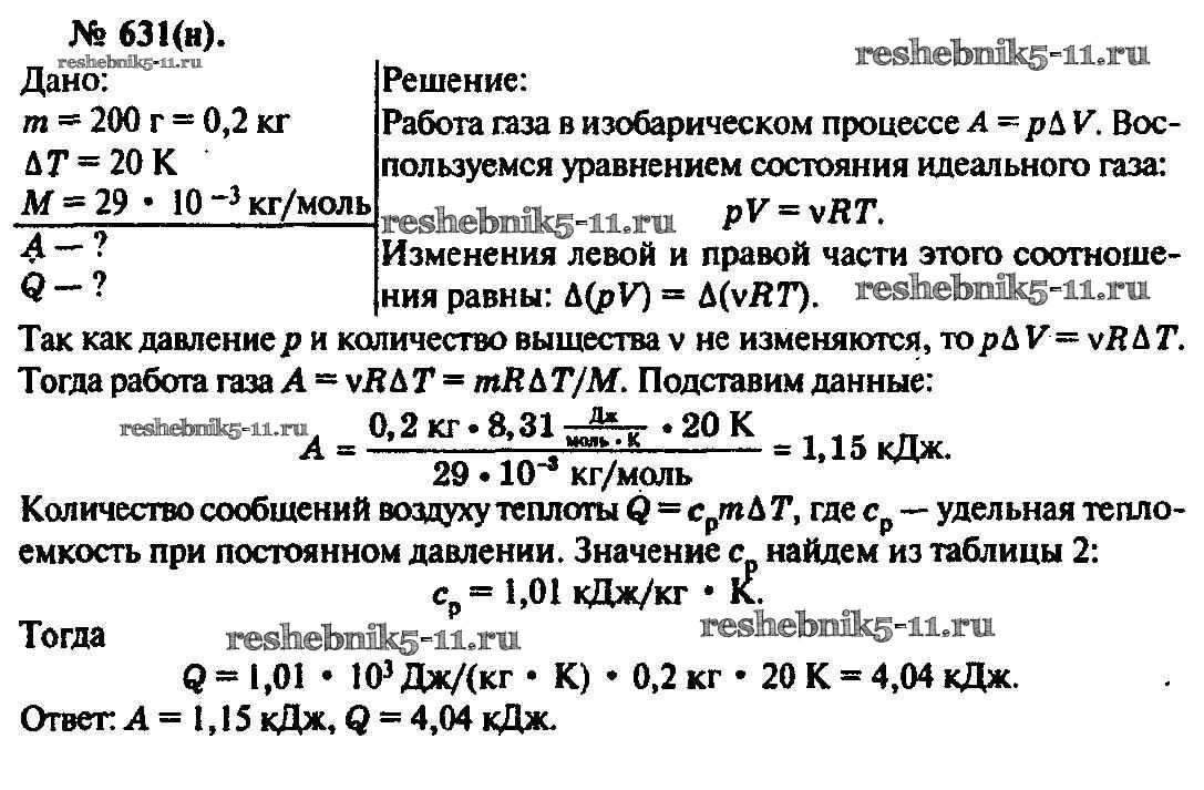 Готовая домашняя работа с ответами по Физике за 10, 11 класс Рымкевич Задачник УМК Дрофа 2013 ФГОС - Задачи 631