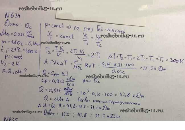 Готовая домашняя работа с ответами по Физике за 10, 11 класс Рымкевич Задачник УМК Дрофа 2013 ФГОС - Задачи 634