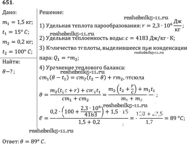 Готовая домашняя работа с ответами по Физике за 10, 11 класс Рымкевич Задачник УМК Дрофа 2013 ФГОС - Задачи 651