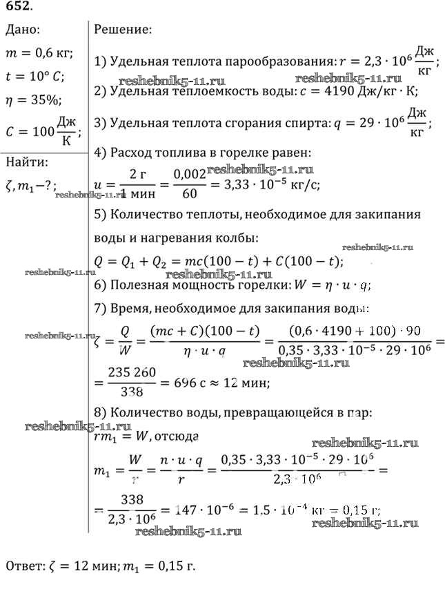 Готовая домашняя работа с ответами по Физике за 10, 11 класс Рымкевич Задачник УМК Дрофа 2013 ФГОС - Задачи 652