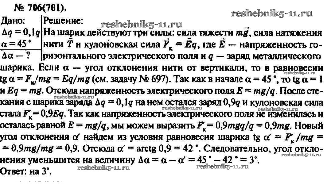 Готовая домашняя работа с ответами по Физике за 10, 11 класс Рымкевич Задачник УМК Дрофа 2013 ФГОС - Задачи 706