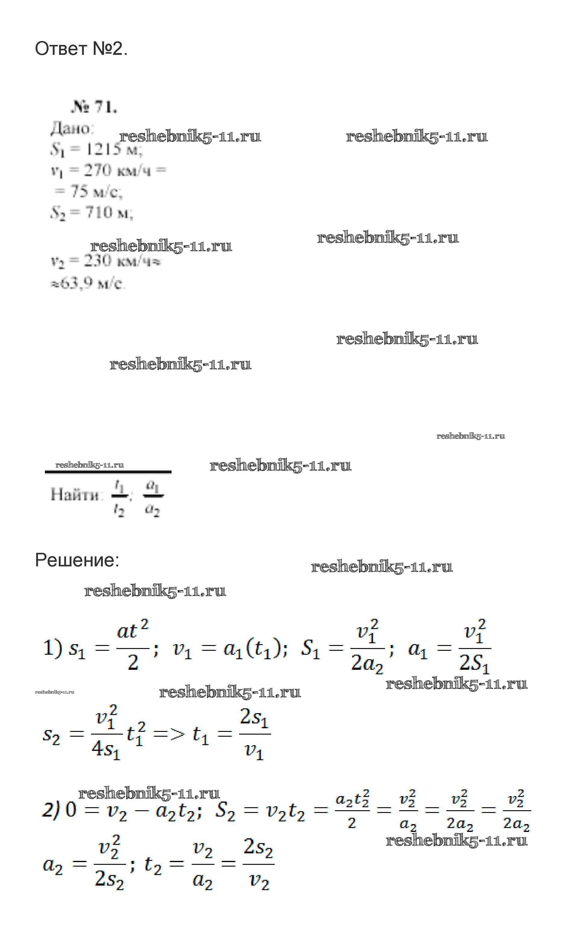 Готовая домашняя работа с ответами по Физике за 10, 11 класс Рымкевич Задачник УМК Дрофа 2013 ФГОС - Задачи 71