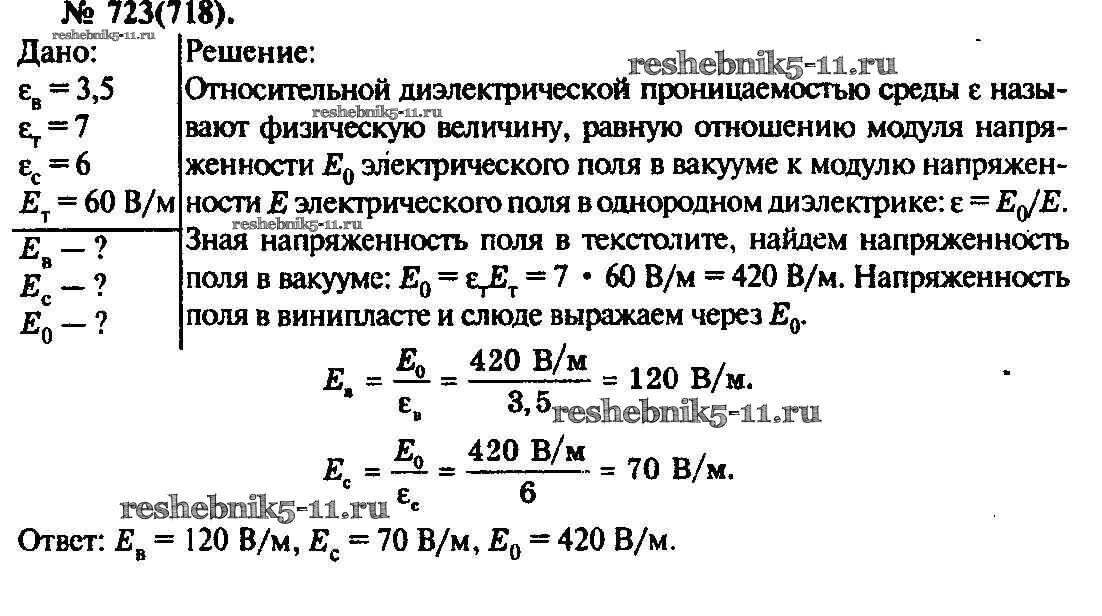 Готовая домашняя работа с ответами по Физике за 10, 11 класс Рымкевич Задачник УМК Дрофа 2013 ФГОС - Задачи 723
