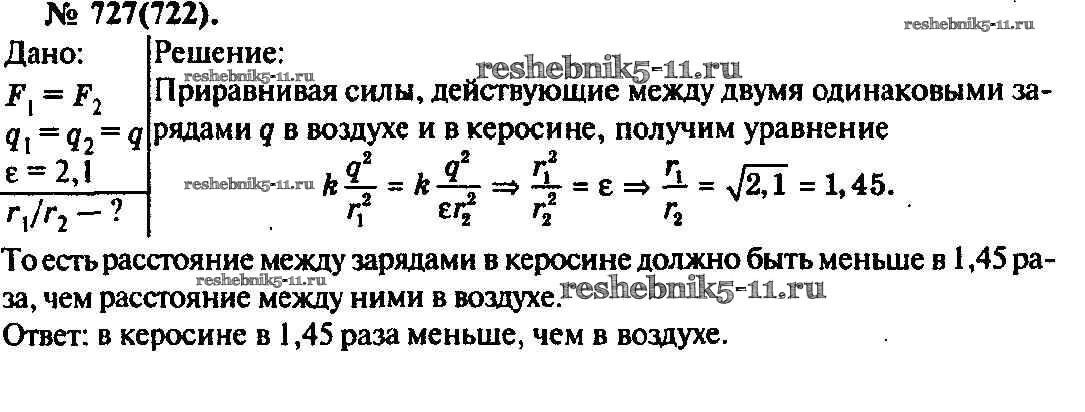 Готовая домашняя работа с ответами по Физике за 10, 11 класс Рымкевич Задачник УМК Дрофа 2013 ФГОС - Задачи 727