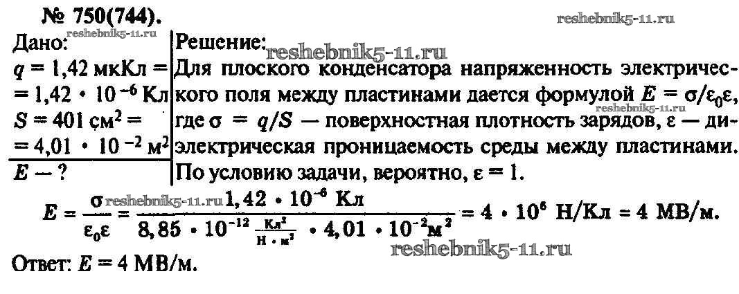 Физика за 10-11 класс Рымкевич Задачник УМК Дрофа задача 750