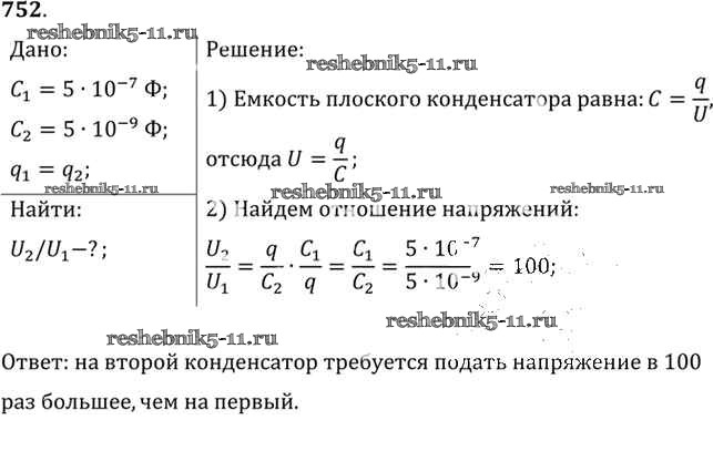 Готовая домашняя работа с ответами по Физике за 10, 11 класс Рымкевич Задачник УМК Дрофа 2013 ФГОС - Задачи 752