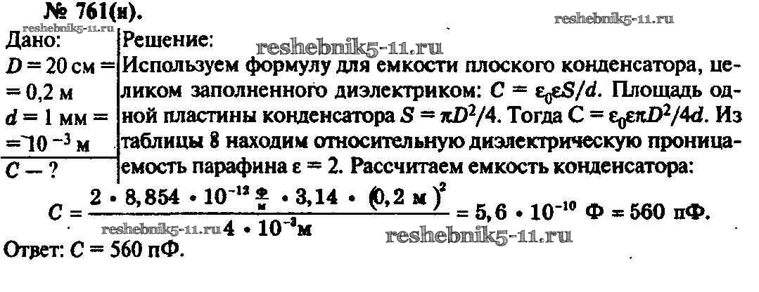 Физика за 10-11 класс Рымкевич Задачник УМК Дрофа задача 761