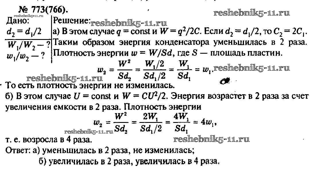Готовая домашняя работа с ответами по Физике за 10, 11 класс Рымкевич Задачник УМК Дрофа 2013 ФГОС - Задачи 773