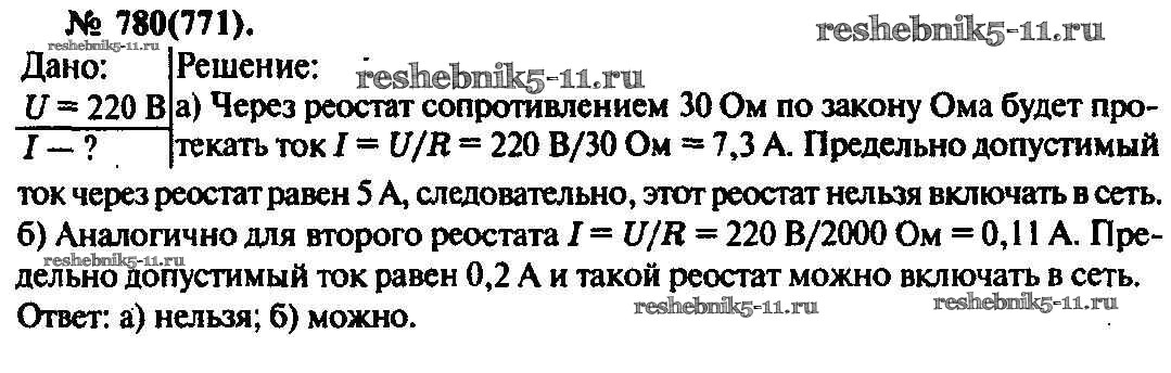 Готовая домашняя работа с ответами по Физике за 10, 11 класс Рымкевич Задачник УМК Дрофа 2013 ФГОС - Задачи 780