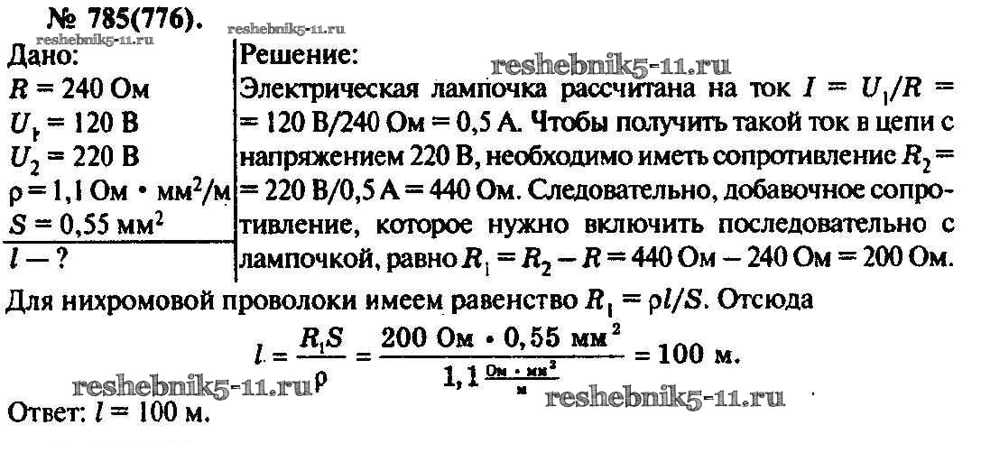 Физика за 10-11 класс Рымкевич Задачник УМК Дрофа задача 785