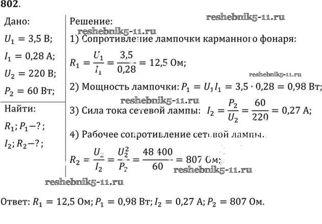 Готовая домашняя работа с ответами по Физике за 10, 11 класс Рымкевич Задачник УМК Дрофа 2013 ФГОС - Задачи 802