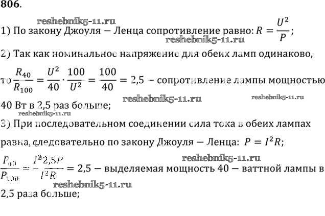 Готовая домашняя работа с ответами по Физике за 10, 11 класс Рымкевич Задачник УМК Дрофа 2013 ФГОС - Задачи 806