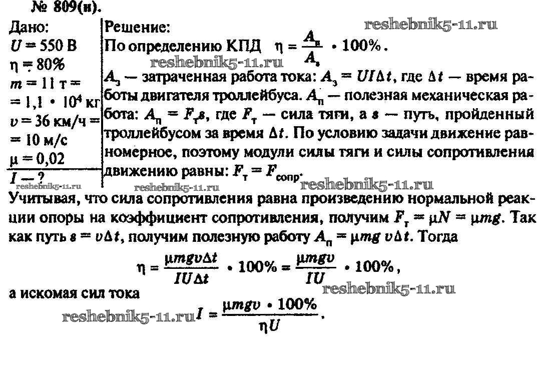 Готовая домашняя работа с ответами по Физике за 10, 11 класс Рымкевич Задачник УМК Дрофа 2013 ФГОС - Задачи 809