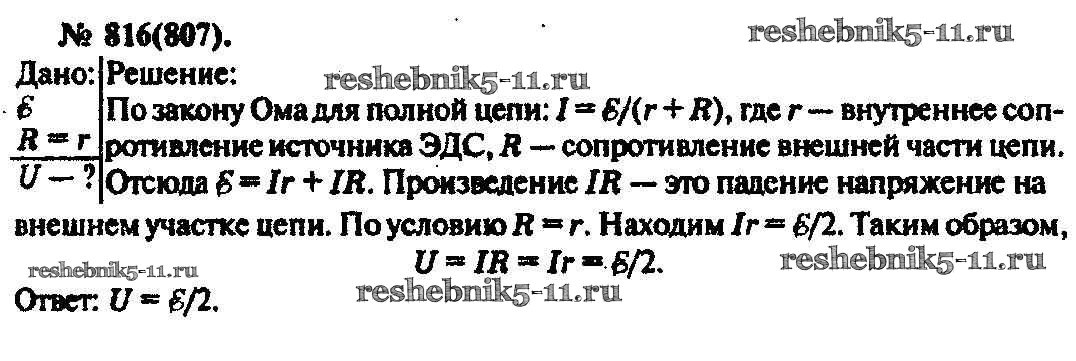 Физика за 10-11 класс Рымкевич Задачник УМК Дрофа задача 816