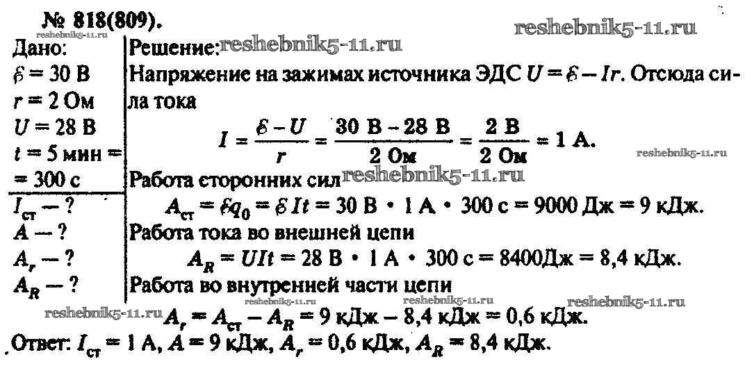 Физика за 10-11 класс Рымкевич Задачник УМК Дрофа задача 818