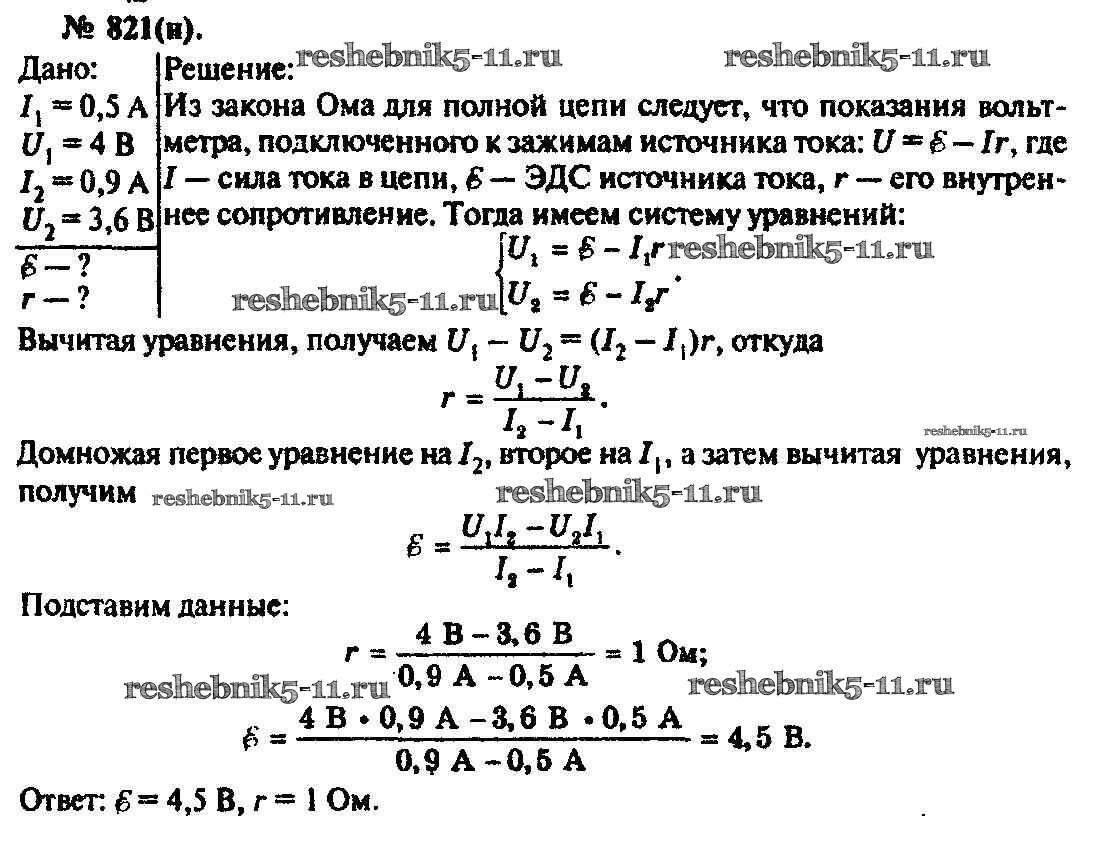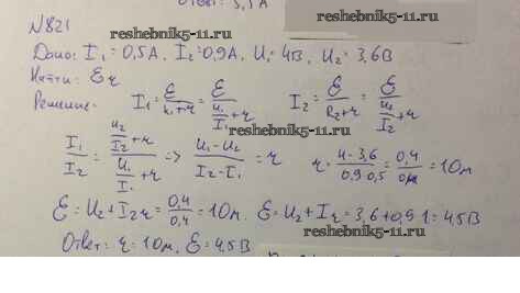 Физика за 10-11 класс Рымкевич Задачник УМК Дрофа задача 821