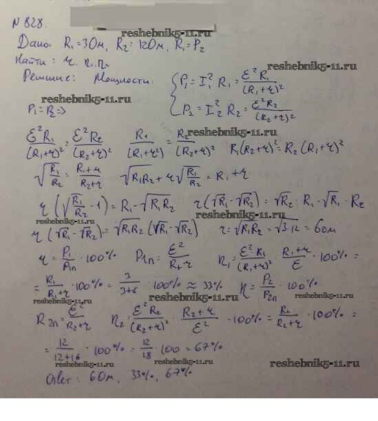 Готовая домашняя работа с ответами по Физике за 10, 11 класс Рымкевич Задачник УМК Дрофа 2013 ФГОС - Задачи 828