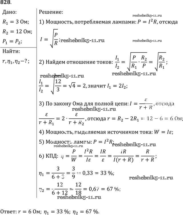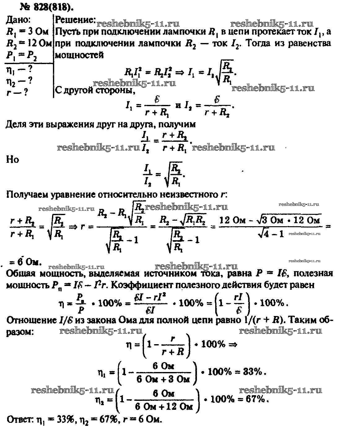 Физика за 10-11 класс Рымкевич Задачник УМК Дрофа задача 828