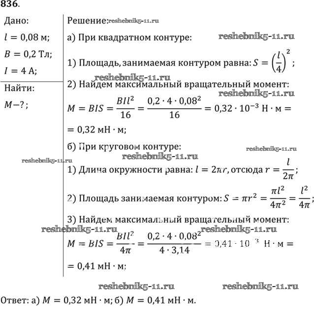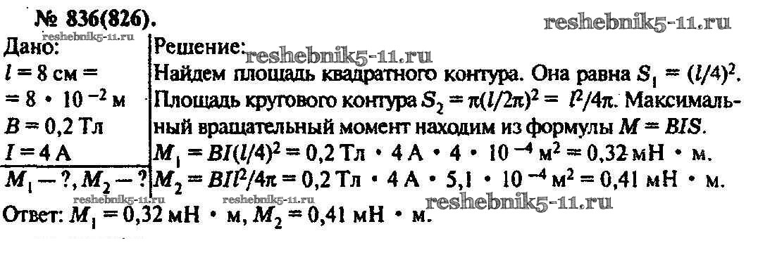 Физика за 10-11 класс Рымкевич Задачник УМК Дрофа задача 836