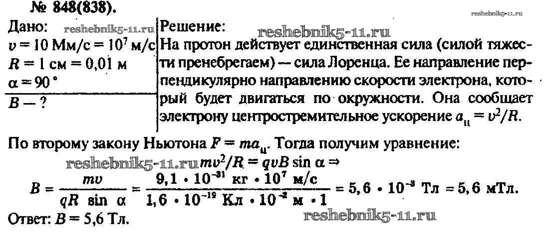 Физика за 10-11 класс Рымкевич Задачник УМК Дрофа задача 848