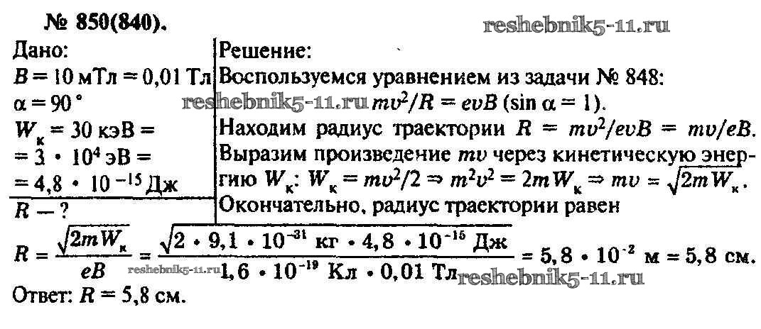 Физика за 10-11 класс Рымкевич Задачник УМК Дрофа задача 850