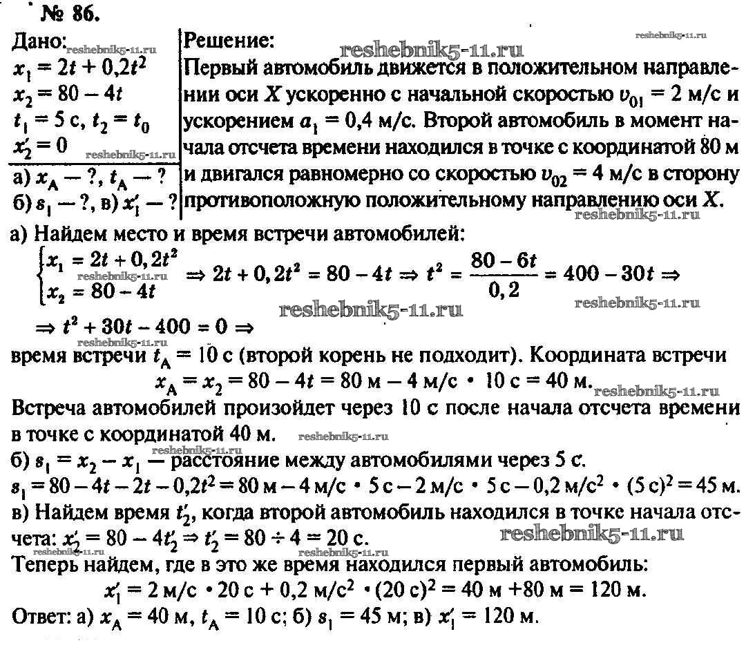 Готовая домашняя работа с ответами по Физике за 10, 11 класс Рымкевич Задачник УМК Дрофа 2013 ФГОС - Задачи 86