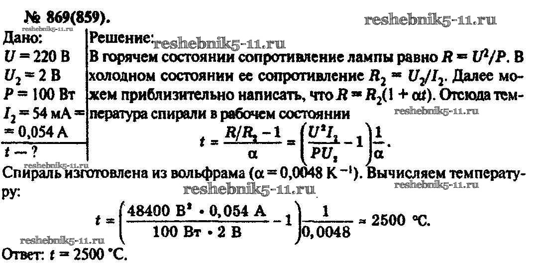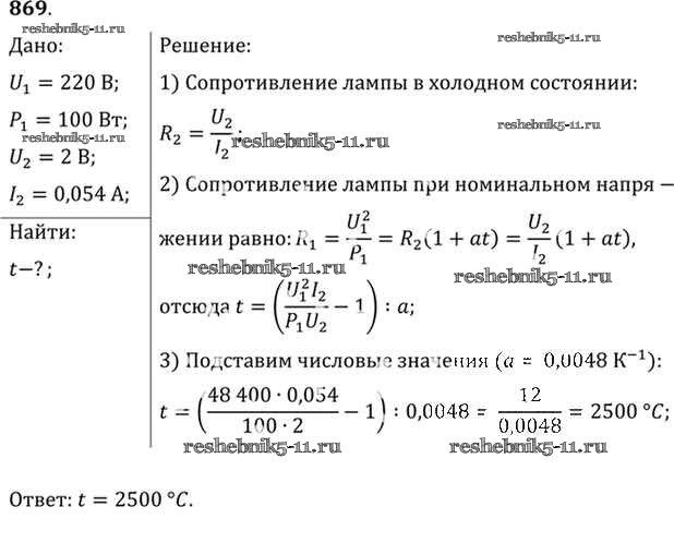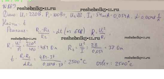 Готовая домашняя работа с ответами по Физике за 10, 11 класс Рымкевич Задачник УМК Дрофа 2013 ФГОС - Задачи 869