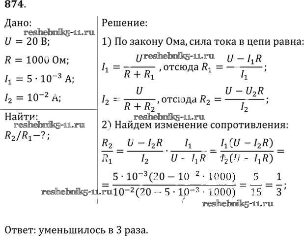 Физика за 10-11 класс Рымкевич Задачник УМК Дрофа задача 874