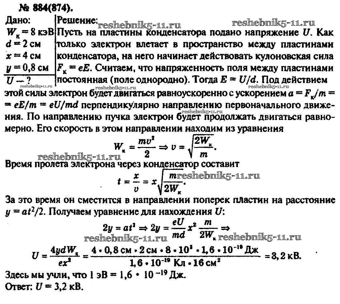 Готовая домашняя работа с ответами по Физике за 10, 11 класс Рымкевич Задачник УМК Дрофа 2013 ФГОС - Задачи 884