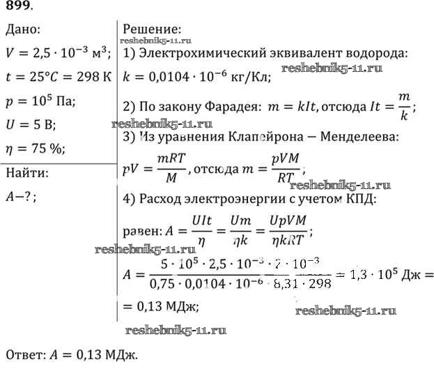 Готовая домашняя работа с ответами по Физике за 10, 11 класс Рымкевич Задачник УМК Дрофа 2013 ФГОС - Задачи 899