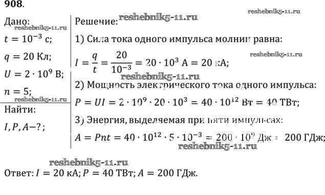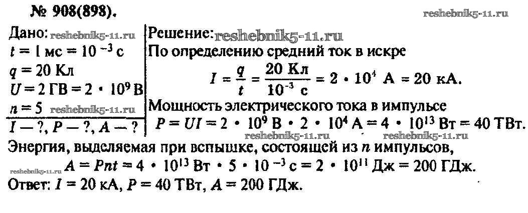 Готовая домашняя работа с ответами по Физике за 10, 11 класс Рымкевич Задачник УМК Дрофа 2013 ФГОС - Задачи 908
