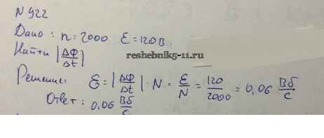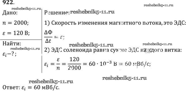 Готовая домашняя работа с ответами по Физике за 10, 11 класс Рымкевич Задачник УМК Дрофа 2013 ФГОС - Задачи 922