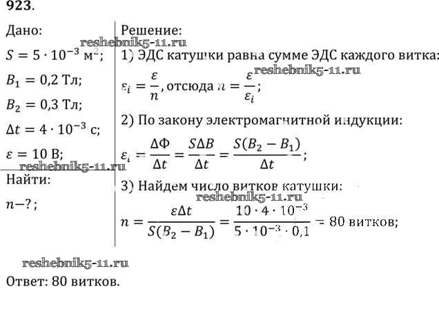 Готовая домашняя работа с ответами по Физике за 10, 11 класс Рымкевич Задачник УМК Дрофа 2013 ФГОС - Задачи 923