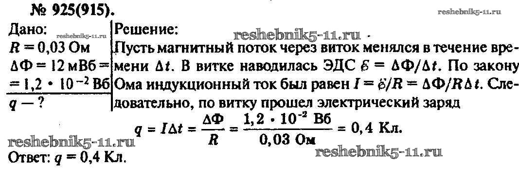 Готовая домашняя работа с ответами по Физике за 10, 11 класс Рымкевич Задачник УМК Дрофа 2013 ФГОС - Задачи 925