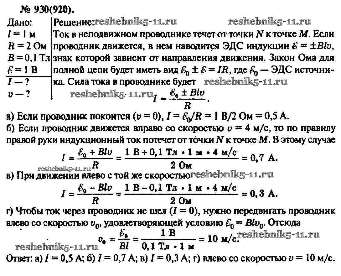Готовая домашняя работа с ответами по Физике за 10, 11 класс Рымкевич Задачник УМК Дрофа 2013 ФГОС - Задачи 930