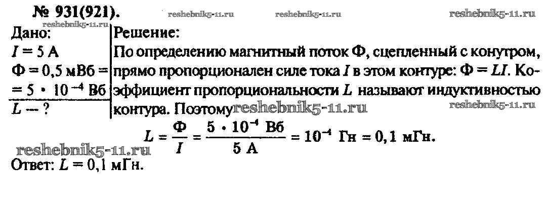 Готовая домашняя работа с ответами по Физике за 10, 11 класс Рымкевич Задачник УМК Дрофа 2013 ФГОС - Задачи 931