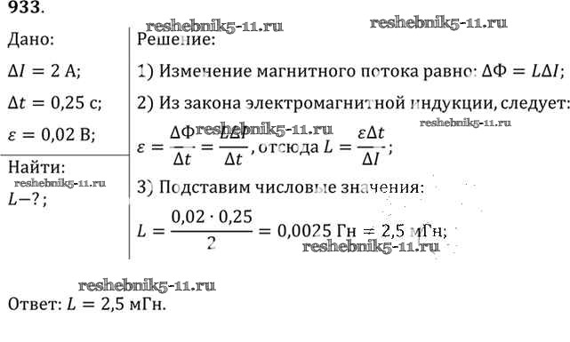 Физика за 10-11 класс Рымкевич Задачник УМК Дрофа задача 933