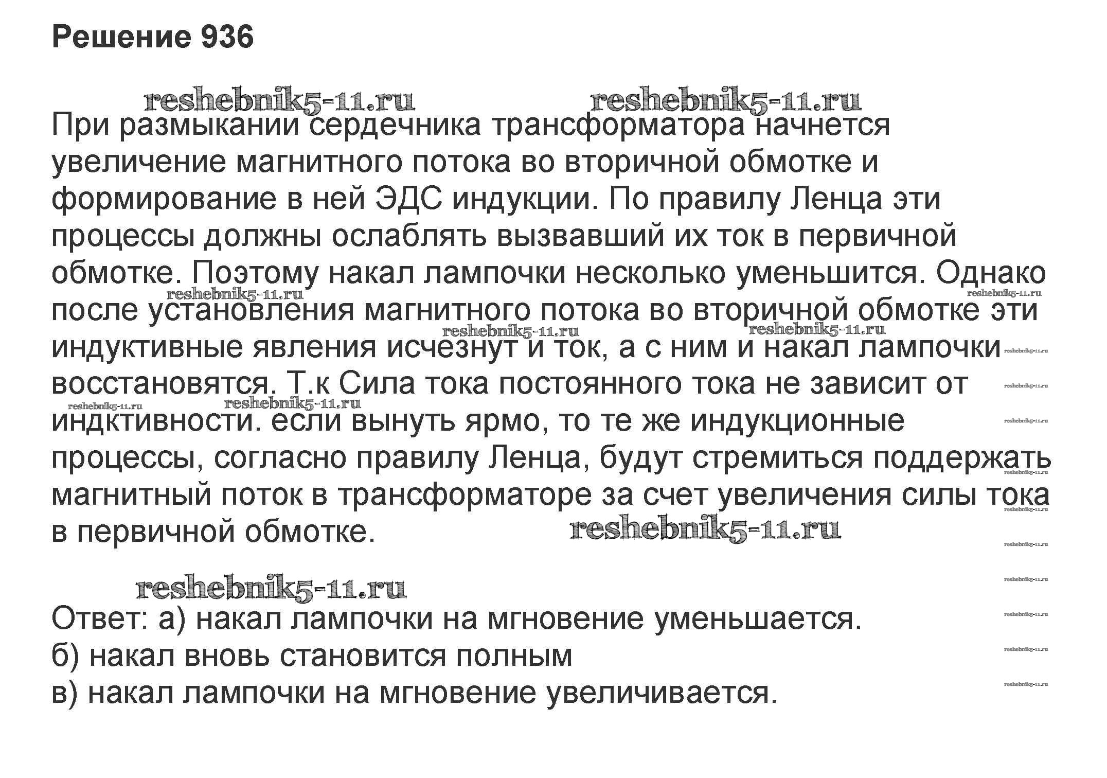 Готовая домашняя работа с ответами по Физике за 10, 11 класс Рымкевич Задачник УМК Дрофа 2013 ФГОС - Задачи 936