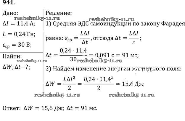 Физика за 10-11 класс Рымкевич Задачник УМК Дрофа задача 941