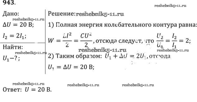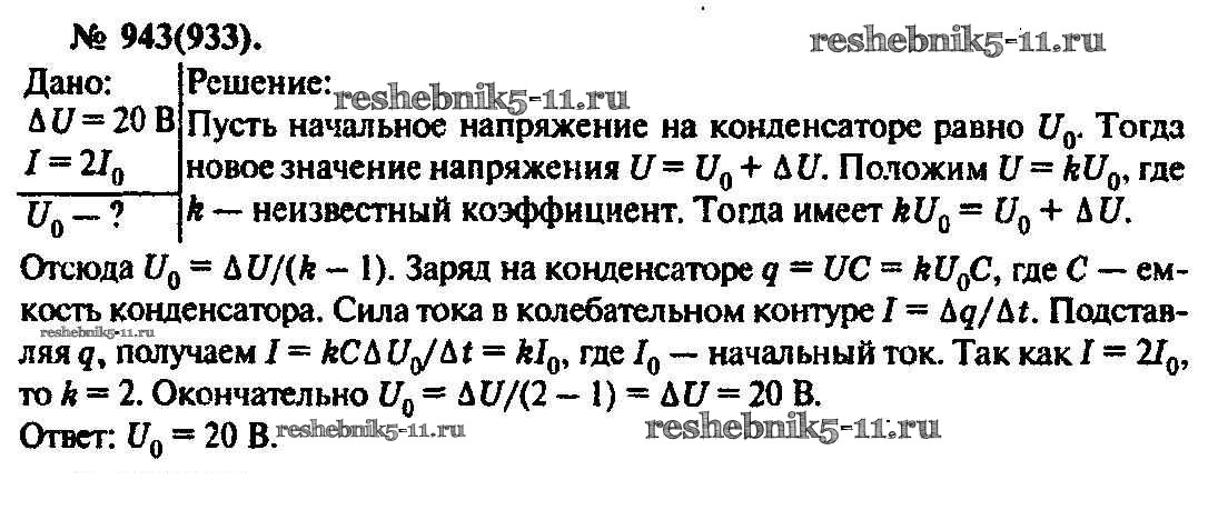 Готовая домашняя работа с ответами по Физике за 10, 11 класс Рымкевич Задачник УМК Дрофа 2013 ФГОС - Задачи 943