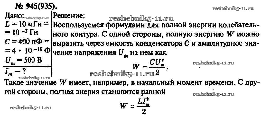 Готовая домашняя работа с ответами по Физике за 10, 11 класс Рымкевич Задачник УМК Дрофа 2013 ФГОС - Задачи 945