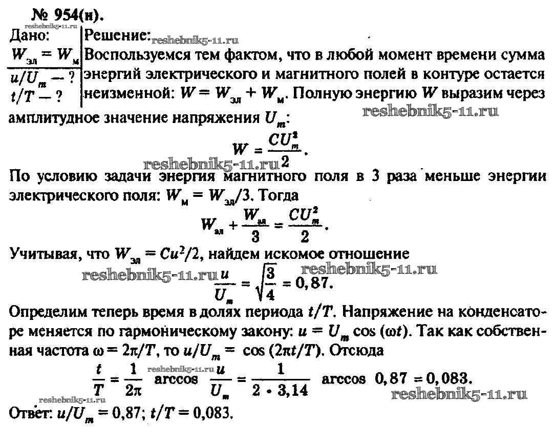 Готовая домашняя работа с ответами по Физике за 10, 11 класс Рымкевич Задачник УМК Дрофа 2013 ФГОС - Задачи 954
